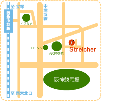 車で 逆瀬川から10分 夙川から25分 武庫之荘から20分 中山寺から20分 豊中から30分 伊丹から10分